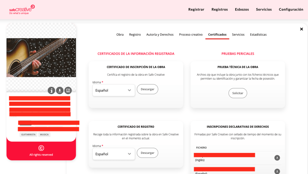 Una vez que hayas registrado tus obras, Safe Creative generará un certificado de registro que prueba la autoría y la existencia de tu creación en una fecha determinada. Este certificado es una herramienta valiosa en caso de disputas o infracciones de derechos de autor. Guárdalo en un lugar seguro y tenlo a mano en caso de necesitarlo en el futuro.